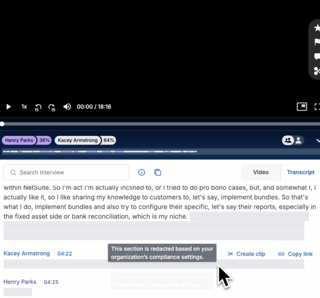Compensation Redaction helps teams collaborate freely while protecting sensitive information. By automatically removing salary, bonus, and equity details from transcripts and recordings, teams can share interview context without compliance risk.