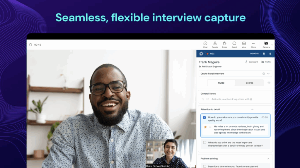 This reduces friction during interviews and helps teams run more consistent, high-quality conversations.